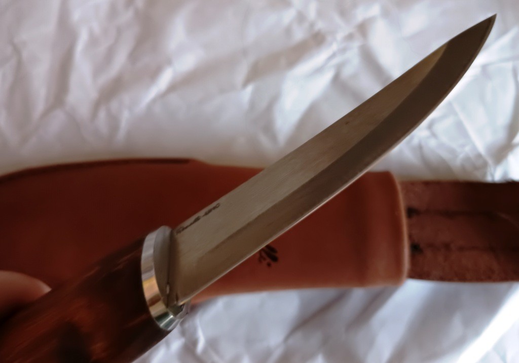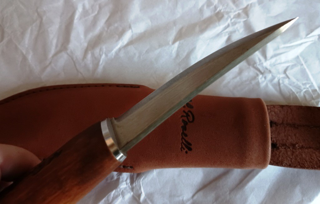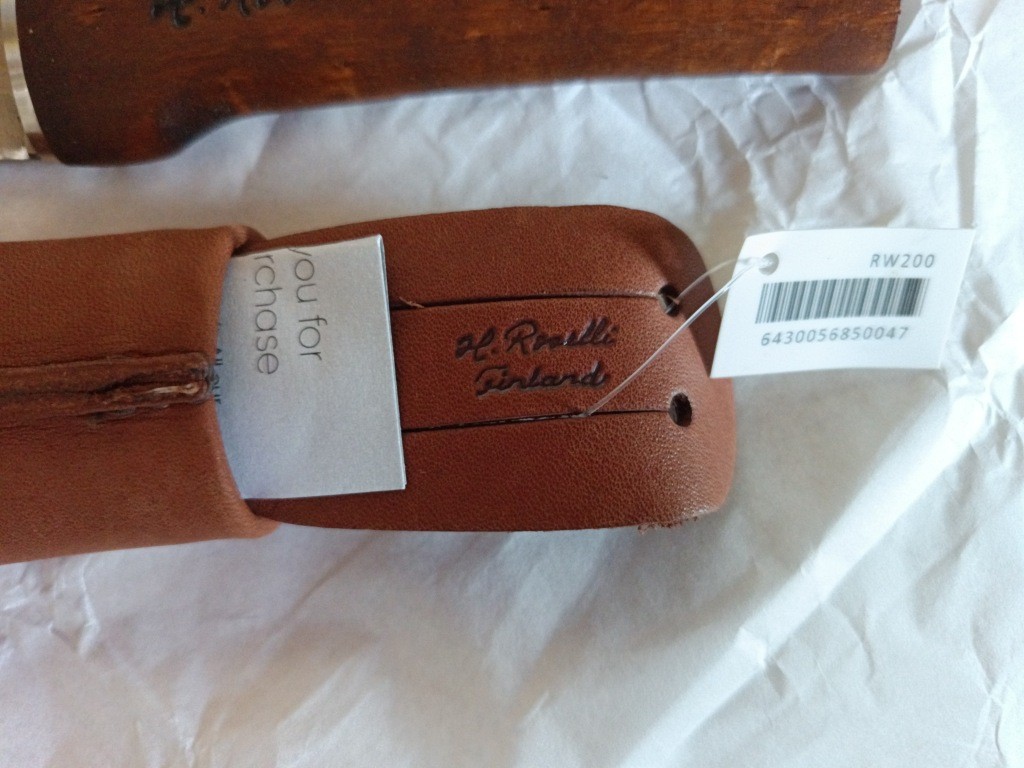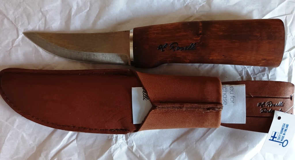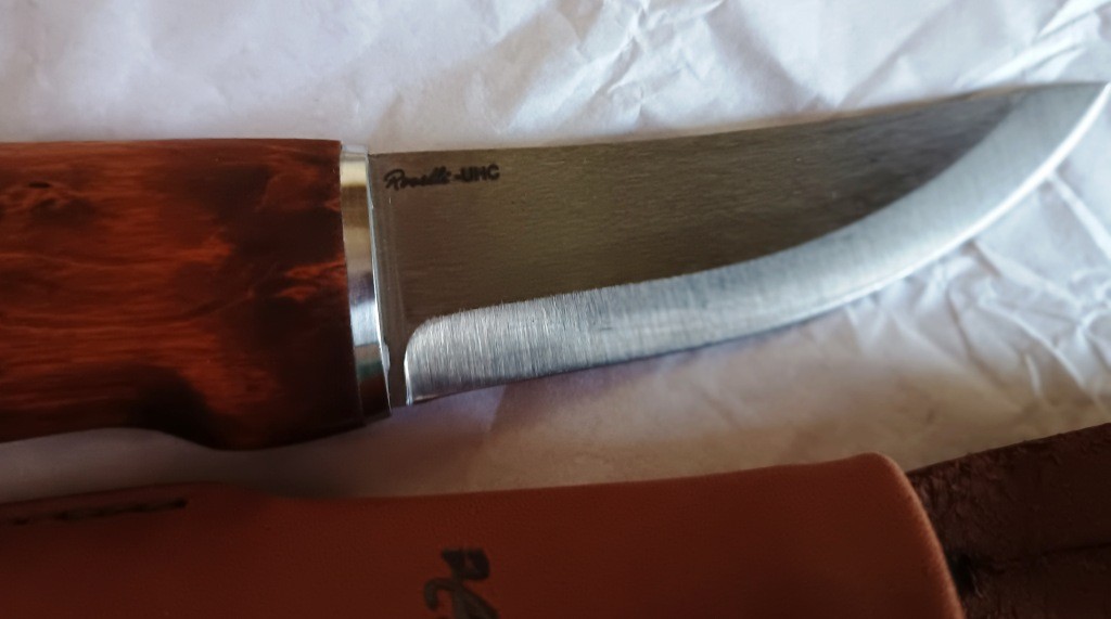 Отличный охотничий нож Roselli RW200 UHC. Клинок из высокоуглеродистой стали, длина 102мм, толщина по обуху 3,0мм. Твердость закалки HRC63. Рукоять из стабилизированной карельской березы. Ножны из натуральной кожи, внутри пластиковый вкладыш. Нож привезен из Финляндии. В продаже в Украине такого нет.